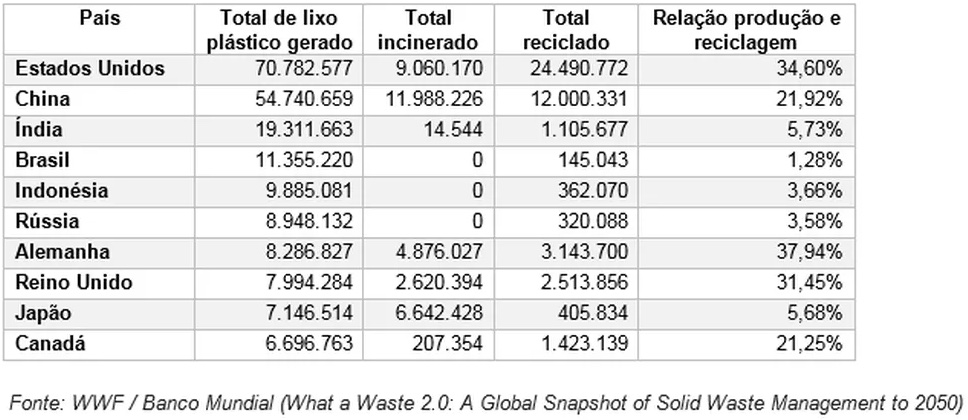 O que mais preocupa o nosso povo é que estamos em 4º lugar nesse ranking. Sim, o Brasil produz 11.355.220 milhões de toneladas de lixo plástico por ano! Ou seja, cada brasileiro produz 1 kg de lixo plástico por semana. E o pior é que somente 145.043 toneladas de lixo plástico são recicladas.